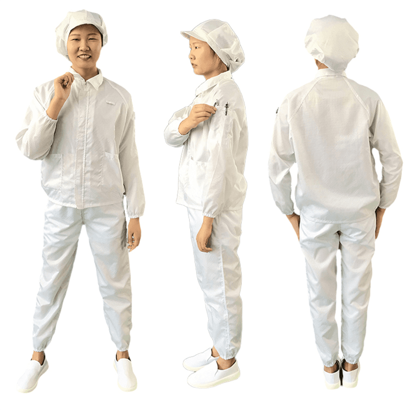 ESD jakne i hlače dizajnirane su tako da osiguraju izvrsnu zaštitu elektrostatičkog pražnjenja (ESD). Povežene su na zemaljsku stanicu kroz ugrađene žice zavojnice kako bi se osiguralo da se statički elektricitet može učinkovito voditi na tlu i spriječiti da se statički elektricitet ometa s osjetljivom elektroničkom opremom. Ova značajka elektrostatičkog oklopa presudna je za zaštitu elektroničkih uređaja od učinaka elektrostatičkog pražnjenja.