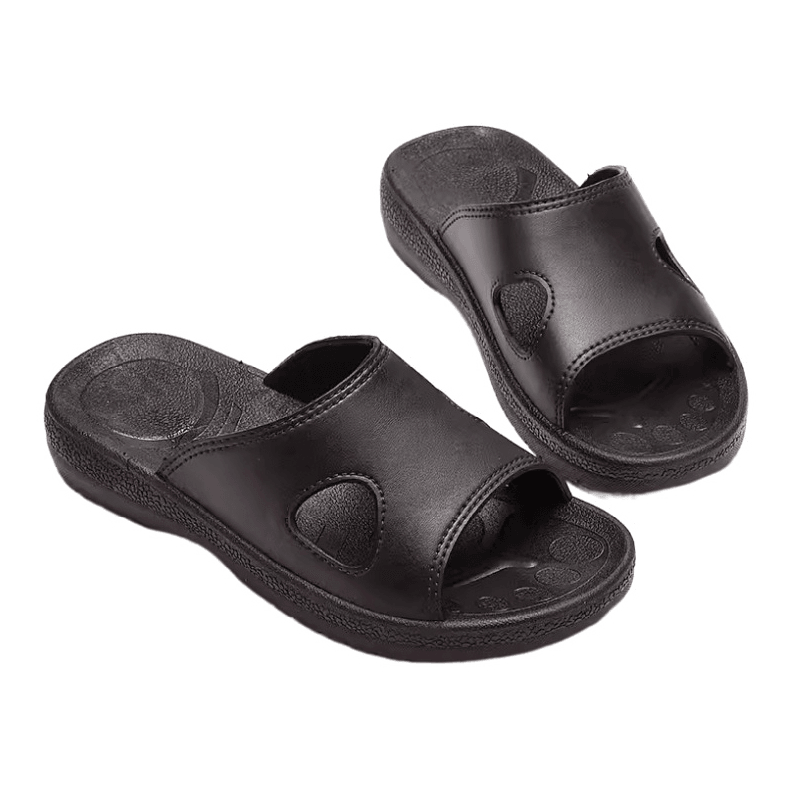 Anti-statičke papuče uglavnom su izrađene od SPU materijala, koji ima izvrsne antistatičke performanse. SPU (Super poliuretanski) materijal ima dobru vodljivost i može učinkovito voditi statički naboj iz ljudskog tijela na zemlju kako bi se spriječilo nakupljanje statičkog električnog energije. Ova je značajka osobito važna za radna okruženja koja su izuzetno osjetljiva na statički elektricitet, poput elektroničkih radionica i čistih soba. Može učinkovito zaštititi elektroničku opremu i osjetljive uređaje i izbjeći oštećenja i neuspjehe uzrokovane elektrostatičkim pražnjenjem.